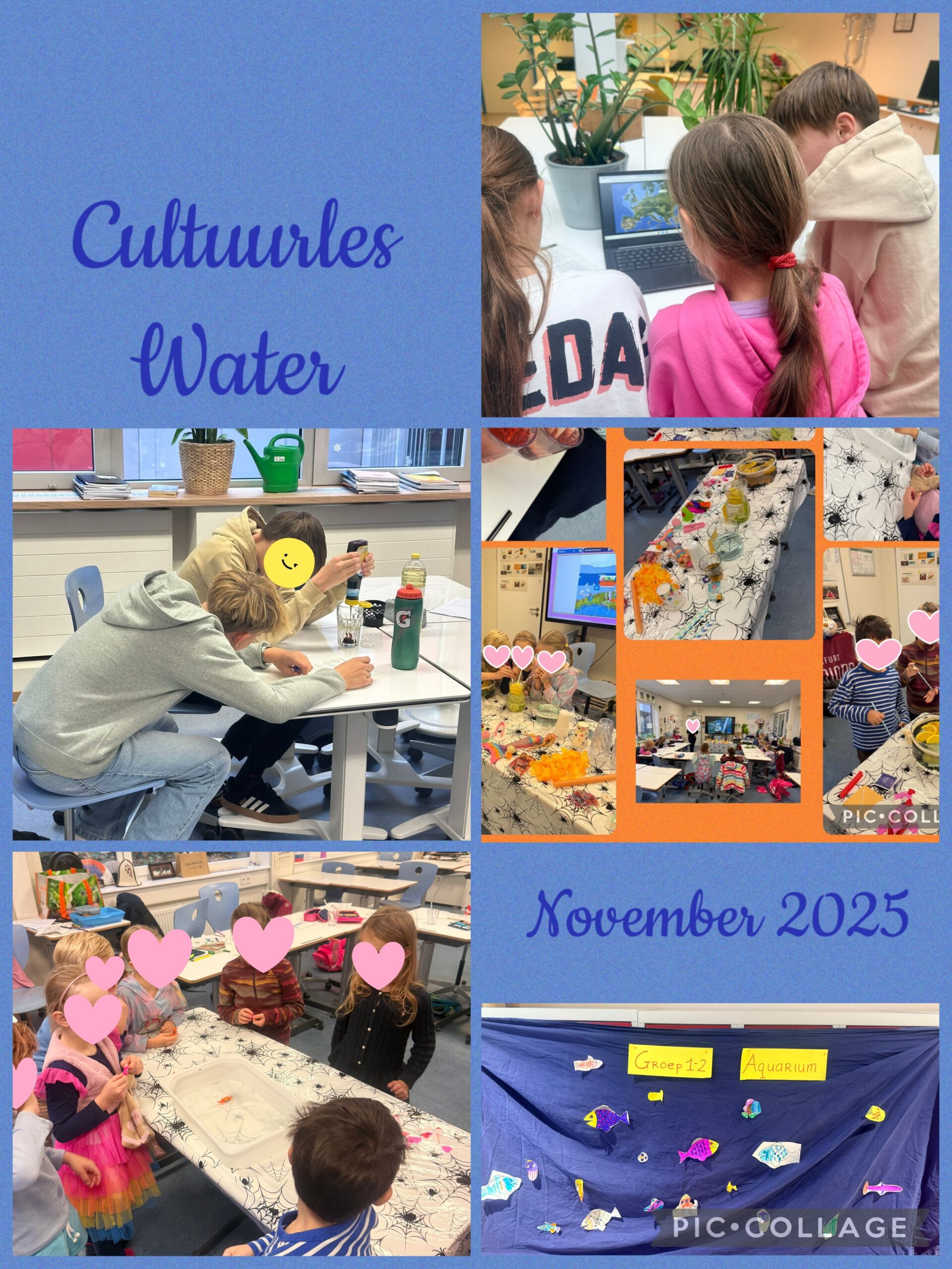 In november stond de cultuurles in het teken van water. De kinderen leerden over het belang van water in de Nederlandse cultuur en maakten prachtige werkstukken, waaronder een aquarium voor de kleuters.